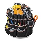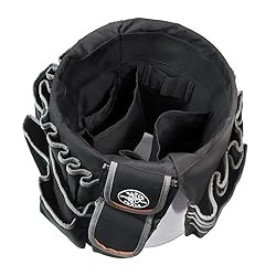 Fits 5-gallon bucket Double layer of polyester along bucket edges for durability Interior pockets include 3 tool sleeves, 1 power tool/cord sleeve, and 6 universal pockets Exterior pockets include 9 driver pockets, 11 pliers pockets, 11 utility pockets, 2 wire stripper pockets and 2 closeable pockets Tools not included