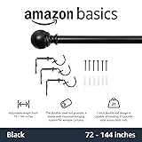 Amazon Basics Sturdy Adjustable Curtain Rod for Windows with Round Finials, 1-Inch, 72" to 144", Black, 1-Pack