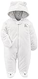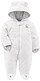 - The Simple Joys by Carter's Footed Fleece Pram with Bear Ear Hood is the perfect combination of warmth, comfort, and playful style for your little one. Crafted from soft, cozy fleece, this pram envelops your baby in warmth, keeping them snug during chilly days and nights. The adorable bear ear hood adds a fun touch, creating a charming look while also providing extra coverage to keep your baby’s head warm. Designed for ease of use, this pram features a full-length zipper that makes dressing and diaper changes effortless. The zipper is complemented by a safety chin tab, which helps prevent any irritation to your baby’s skin, ensuring a smooth and comfortable experience. With a footed design, your baby’s toes stay warm and covered, eliminating the need for separate socks. The pram is designed with a tagless interior, adding to the comfort by eliminating any itching or discomfort that traditional tags can cause. Available in a variety of playful prints and patterns, it offers a range of cute and fun styles to match your baby’s personality. Made from materials that have been tested for harmful substances, this pram is OEKO-TEX® Certified, making it a safe choice for your baby’s delicate skin. Whether for outdoor outings, nap time, or simply lounging around the house, the Simple Joys by Carter's Footed Fleece Pram with Bear Ear Hood provides the warmth, softness, and cuteness every parent will love.