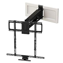 MantelMount MM540 - Above Fireplace Pull Down TV Mount for 44" to 80" Screen TVs to 90 lbs, with Patented auto-straightening, Adjustable Stops, Heat Sensor Handles & Paintable Covers