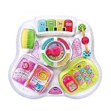 The Sit-to-Stand Learn and Discover Table grows with your baby, transforming from a floor toy into a two-way learning table Your child can grow and develop using the interactive electric panel with six learning stations; baby activity table is intended for infants ages 6+ months Your baby will love pretending to talk on the phone, pressing the light-up piano keys, playing with the interactive book and more Fun sound effects and light patterns reward your child’s curiosity and encourage discovery; thirteen playful sing-along songs and melodies add to the fun The Learn and Discover Table introduces letters, numbers, shapes, colors, greetings and time concepts; bead track and roller develops fine motor skills; requires 2 AA batteries (included)