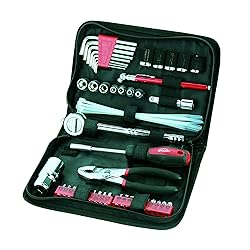 HANDY AUTO TOOL KIT: Small, compact, fits anywhere, but contains the essential tools for your vehicles’ emergency repair, including most used 1/4” and 3/8” sockets, hex keys, tire gauge, slip joint pliers, cable ties and a bit driver with its 20 most useful bits. COMPACT ZIPPER CASE: The tools hold in place with elastic straps making them easy to store and easy to find. The case is small enough to fit in larger glove compartment, a backpack, a motorcycle saddle bag, or even stay at home in a kitchen drawer for quick access GIFT OF SAFETY: Our 56-piece Auto Tool Kit makes a fantastic gift for family members or friends. Parents like to give it to their kids when they drive their first car. This kit represents peace of mind for the whole family, and makes you want to throw one in each of the household’s vehicle: boat, RV, car, motorcycle, etc. METRIC: This tool kit comes with metric sockets only