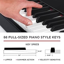 Perfect Feel, Ultimate Response - 88 fully-weighted, hammer-action velocity-sensitive keys deliver natural piano feel, faithfully replicating every subtle nuance of your performance Plug-n-Play - Driverless class compliant and USB powered specification provides seamless USB-MIDI connection for playing virtual instruments, controlling recording software and more Express Yourself - Conveniently located pitch bend, modulation, volume and octave controls for immersive, expressive performances All The Right Connections - Expanded control options for Inputs for Sustain, Expression and Soft pedals included Free Online Lessons - Includes FREE 3-month subscription to Skoove; The easiest way to learn piano with interactive piano lessons for beginners and advanced players Pro Software Suite Included - MPC Beats, Ableton Live Lite, Eighty Eight Ensemble, AIR Music Tech’s Velvet, Mini Grand, DB33, and Touch Loops