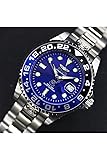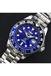 Stainless steel case 47mm diameter x 16mm thick; Exhibition case back; Blue dial; Luminous hands and hour markers NH35A Japanese Automatic movement, 24 jewel; Assembled in Malaysia; Watch weight: 234 grams Stainless steel band, 210mm L x 22mm W; Band is adjustable by adding/removing links; Fold over safety clasp Mineral crystal; Screw-down crown; Unidirectional stainless steel bezel with black and blue top bezel ring; 300 meter water resistant: Suitable for professional marine activity and surface water sports. Suitable for diving.