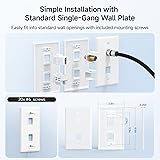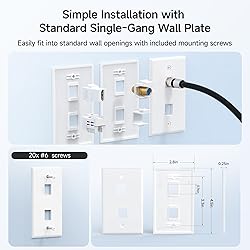 2 Port Wall Plate for Keystone Jacks: This 2 port keystone wall plate is designed to create a neat A/V cable patch location for home theater media centers or office conference rooms. The Ethernet wall plate accommodates various keystone jacks, including RJ45 Cat 6 Ethernet, HDMI, RG6 coax, banana plugs, and more, offering versatile connectivity options. Fits Standard-Sized Receptacles: This single gang keystone wall plate 2 port fits standard-sized receptacles and includes mounting screws for easy installation. Perfect for adding a new patch cable location, such as an RJ45 keystone jack, using a low-voltage mounting bracket. The RJ45 keystone jack wall plate fits seamlessly into standard single-gang wallplate openings. Sleek and Low-Profile Design: The RJ45 wall plate features a low-profile design that sits almost flush against the wall. Its contemporary glossy finish provides a professional, clean look, making it ideal for both residential and office settings. Cost-Effective 10-Pack: This 10-pack of Ethernet wall plates (keystone wall plates) is perfect for home renovations, office upgrades, or multiple installations. Get enough faceplates to meet your needs while saving on costs, making it ideal for larger projects. UL Listed for Safety and Durability: The UL-listed keystone jack faceplate (E486099) meets building specifications for low-combustion wall outlets. Made from flame-resistant ABS plastic, this Ethernet jack wall plate ensures safety and durability for both home and office use.
