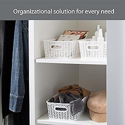 STURDY QUALITY DESIGN: Our Storage Tote Basket are made of high-quality polypropylene plastic with attractive herringbone style craftmanship that adds a warming touch to home décor. The open bin design allows easy view and access to your held items. CONVENIENT & MULTIFUNCTIONAL: The baskets are versatile for home and office organization. Organize office supplies, arts and crafts, playroom, laundry room, sewing room and more. 2 Open Handles: These baskets have two durable handles that are lightweight and easy to move to any room in the house. Dimensions: 10" x 8" x 4"