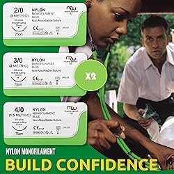 ASSORTED TRAINING PACK: This item is made of 24 mixed sterile suture threads (4 types of non-absorbable training threads): Nylon (Blue): 2/0, 3/0, 4/0; Polyester (Green): 2/0, 3/0, 4/0; Polypropylene (Blue) and Silk (Black): 2/0, 3/0, 4/0. These are great tools for wound closure practice. Each suture type comes with different ultra-sharp reverse cutting needle sizes (25mm, 20mm, and 17mm), which will allow the user to understand the spectrum of wound closure techniques. NOT FOR CLINICAL USE. HIGH QUALITY: Our product underwent an extensive quality control process. Designed for demonstration use but may be included in a medical student's suture practice kit. The educational device is excellent for people who want to master suturing in preparation practical exams, required hospital-related skills, classroom experiments. You will gain the confidence needed in the actual clinical field. HANDY: This training pack is excellent for people who want to master the art of wound closure in preparation for vet, medical/surgical hospital clinic rotations, college anatomy subjects, classroom experiments, biology class, zoology course, laboratory activities/experiments, training suture skin, taxidermy, hobbyist, and art projects. CAUTION--Device for investigational use in laboratory animals or other tests that do not involve human subjects. UNIQUE: The practice device passed the high standard of the international quality assurance product board. It is a perfect demonstration device that clinical trainees, medical residents, student nurses, practicing vets, and other training allied medical practitioners will love. It is an ideal alternative to practice surgical sutures commonly used in schools and different educational settings. It makes an excellent student gift for any occasion. CONFIDENCE: Modesty aside, the product is used by top training institutions in the country and abroad. The collection can help beginning learners and even master surgeons by giving them a vast knowledge of suture thread materials. Knowing the appropriate training thread for specific emergencies can make a difference. Try our product completely risk-free.