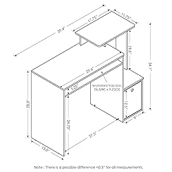 Compact stylish design: Compact size Computer desk with side shelves suitable for small rooms Quality material: Manufactured from high quality durable composite wood Home office essential: comes with keyboard tray and non-woven bin for storage Furinno fits: fits in your space, fits on your budget Product Dimension: 39. 4(W)x34. 1(H)x15. 8(D) inches. Desk top dimension: 29. 6(W)x28. 5(H)x15. 8(D) inches