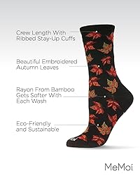 Crew height socks Soft rayon fabric Beautiful embroidered autumn leaves Made with Sustainable fabric