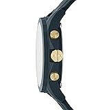 STYLISH: This Armani Exchange watch features a blue combo dial, chronograph movement and blue silicone strap CASE & MOVEMENT: A men's watch with a 47mm case, 22mm band width, scratch resistant mineral crystal, accurate quartz movement with chronograph analog display, imported DIAL: These men's watches feature a round silicone case with a blue dial WATCH BAND: Wrist watches for men with a blue, durable silicone band with a secure single prong strap buckle closure WATER RESISTANT MENS WATCH: Up to 30m (100 ft); Will withstand splashes in water; 3 ATM