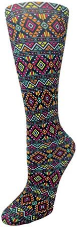 One pair of knee length, closed toe compression socks with the Azteca print. 95% Hand Wash Separately. Drip Dry. Do Not Bleach. Do Not Iron.
