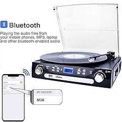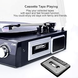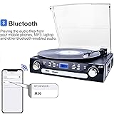 DIGITNOW Bluetooth Record Player with Stereo Speakers, Turntable for Vinyl to MP3 with Cassette Play, AM/FM Radio, Remote Control, USB/SD Encoding, 3.5mm Music Output Jack(Black)