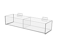 - 2 Pack Slatwall 16"W Acrylic 2 Compartment Retail Merchandise Storage Bin Product Features: Double Compartment Clear Acrylic Retail Slatwall Tray These slatwall caddys are designed for standard slatwalls. Will not fit on custom or metal slatwalls. Overall Dimensions: 16"W x 4.75"D x 4"H Compartment Dimensions: 7.75"W x 4"D x 3"H Thickness: 0.118", 3MM or 1/8" Slatwall merchandise boxes can be used for a variety of products and showcase small items and parts Proudly made with premium high quality acrylic Marketing Holders clear acrylic storage bins are the perfect way to display and organize retail merchandise. The durable container has two large compartments to keep products organized. The clear caddy combines style and functionality for many types of businesses and service stations. These slatwall containers are great for retail locations or convenience stores to present products in an orderly fashion. These dump bins can also be used in candy stores to display bulk candies and other goods. Customers will love the clear view that allows them to see the contents inside and appreciate a neat and clutter free slotwall display. This slatted wall tray adds style to any item without taking the attention away from the product. Place one or multiple trays by your front entrance to entice customers to purchase new, discounted or impulse items. Slatwall boxes are great to help conserve precious table or counter space in retail locations. Another ideal use for these heavy duty bins are in garages and workshops. Use one or more to organize small parts and hardware. These compartment trays are a great way to maximize the storage space in your work area. These slatwall organizers ship preassembled. No assembly required! *All sizes are approximate *Tolerances: Thickness +/- 10% *These slatwall bins are designed for standard slatwalls. Will not fit on custom or metal slatwalls.