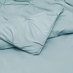 Amazon Basics 3-Piece Soft, Lightweight All-Season Down-Alternative Comforter Bedding Set, Pinch Pleat Design with Piped Edges, Full/Queen, Spa Blue