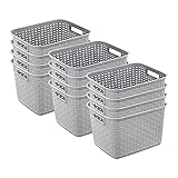 Sterilite 12-Pack Tall Weave Basket, Wicker-Style Plastic Open Storage Bin, Cement Gray - Multi-Purpose Decorative Organizer for Laundry Area, Shelves, Closets, Pantries, Living Rooms or Offices