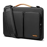 All-round Military-grade Protection: The tomtoc Laptop shoulder bag features CornerArmor technology with 4 corner protectors, high resilient edges, high-density padding, and Water-resistant fabric combined to protect your device from the inevitable bumps, dents, scratches, and water spills. The computer handbag has passed the military standard drop test in 2020 (MIL-STD-810H: 2019) Smart Tri-compartment Storage System: The laptop case has two separate compartments with several small pockets and a strap for Airtag or key. It can keep your electronic accessories, such as charger, cable, USB hub, Kindle, etc., stay organized. In addition, a hidden pocket on the back allows you to store your personal belongings for easy access while remaining secure Quality Meets Performance: Top-quality YKK zippers, all reinforced stress points, and padded and fleece sophisticated interline design meet or exceed your expectations for laptop bag quality. PU leather handles and lightweight design provide you with maximum comfort. Eco-friendly recycled fabrics enable us to give complete protection to your computer while also protecting our environment Wirecutter Pick Awards: Standing out with incredible carrying versatility and outstanding quality, our A42 Series were appraised "A Great Laptop Bag" by Wirecutter (A New York Times Company); Detachable shoulder strap, a comfortable shoulder pad, and a durable carabiner make it a comfortable shoulder bag perfect for business, school, or travel What You Get: 12-month worry-free Warranty, friendly and timely customer support, A laptop shoulder bag for 16-inch New MacBook Pro M5/M4/M3/M2/M1 Pro/Max 2026-2019 A2991 A2779 A2485 A2141, Also compatible with Dell XPS 15 | 15 Inch New Microsoft Surface Book 3, The New Razer Blade 16 | ThinkPad X1 Extreme Gen 5 15”, and most 14 inch laptop, etc.; Internal Dimensions - 14.01" x 9.76" x 0.66"