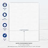 Easily print W-2s, 1099s, statements, invoices, certificates, and coupons with this 3" perforated paper. These perforated sheets help you save time by providing clean and easy tears Case includes 2500 bright white 8.5" x 11" sheets of 24 lb copy paper, featuring a clean horizontal perforation 3" from the bottom for quick tearing and folding Our 3 inch perforated printer paper makes payroll, shipping, and everyday business tasks easier and more efficient, reducing the stress and hassle of manual document processing This 2-part paper is compatible with laser and inkjet printers; copiers; and most business, accounting, and shipping software that uses standard templates, ensuring simple integration PrintWorks Professional perforated paper has been proudly made in the USA since 1964 using domestically sourced, environmentally friendly materials for reliable quality and sustainability