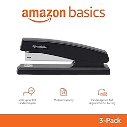 - Amazon Basics 25-Sheet Capacity, Non-Slip, Office Stapler with 1000 Staples, Black - Pack of 3