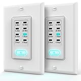 Fosmon Countdown Light Timer Switch for Bathroom, Heaters, 5-10-30-60 Min, 2-4 Hour Programmable in-Wall Timer Switch with 9 Settings 1875W, Neutral Wire Required, 2PACK, ETL Listed