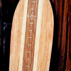 - Wooden Snowboard Growth Chart, crafted from the maple plywood available, boasts a sleek design that fits seamlessly with any decor. Measuring 56" long by 10" wide, this growth chart can measure heights up to 6' 2". With adhesive strips and clear, easy-to-follow directions, you can have this growth chart on your wall in no time. These snowboard growth charts mount flush to the wall; they do not curve at the tip like real snowboards. Additionally, due to the natural variations in maple wood, each piece is unique, with possible darker fibers or pinhole knots that may show through the finish and artwork.