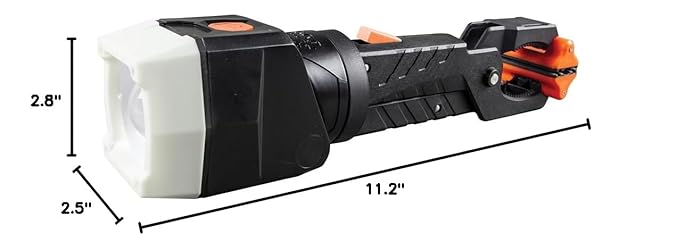 Work Light can easily clamp to a ladder or lift Head rotates a full 360 degrees and pivots up to 90 degrees directing light wherever you need it Unit can stand up by itself, includes 4 AA batteries Light projects in front of you, reducing shadows Easy to find glow head recharges when the light is on IP54 rating: dust and water resistant High: 250 Lumens and 8 hour runtime, Low: 125 Lumens and 10 hour runtime