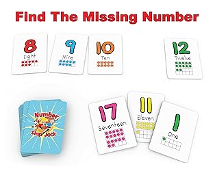 Amazing Results: Number Slap Jack is a fun and fast-paced math game designed to help children ages 4 and up master numbers 0 through 20. With multiple ways to play, including Number Slap Jack and Find My Number Match, your child will quickly build counting and number recognition skills while having fun 4-in-1 Math Game: Play four exciting games—Slap Jack, Find My Number Match, flash cards, or create number equations with the included operator cards (greater than, less than, plus, minus, and equal signs); all using the same deck Easy to Learn: Cards are specially designed to make learning simple for young kids. The compact design also allows the game to be easily stored or taken on the go; perfect for learning numbers anywhere Teacher-Created: Developed by an award-winning elementary school math teacher, this game is aligned with current classroom learning standards, making it a trusted resource for parents and educators Kid-Friendly Design: Brightly colored numbers and ten-frame boxes help kids identify numbers and count dots if they need a little extra help. This design makes it a highly effective teaching tool for kids with different skill levels What's Included: 52 poker-sized game cards, including number cards, operator cards, and rules; ideal for 2 to 6 players, ages 4 and up; great for use at home, in preschool, kindergarten, or for homeschooling