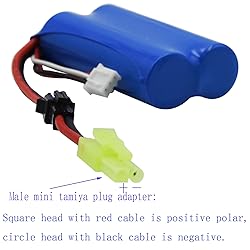 Discharge plug: SM-2P connector plug. Battery Size (±3mm):69*37*19mm /2.70*1.44*0.73 inch(L*W*H) . battery weight: Approx 95g/3.35oz. Mini male Standard tamiya plug converter cable, not female. If need extra Female Mini tamiya converter , you can buy ASIN : B0F5Q89WWQ 7.4V 1500mAh Lithium-ion SM-2P battery connector plug: SM-2P Connector plug,7.4V; Cell: 2S ; Capacity: 1500mAh; discharge rate: 15C ; Charge plug: JST-XH 3 pin Connector. 7.4V 1500mAh Li-ion Battery SM-2P Plug for old version TKKJ Skytech H101 H105 H103 Remote control RC Boat. Batteru siotable for Some kind of RC Car RC Vehicle Buggy Trucks, Which battery size, voltage, and plug all match. Notice: Connector Plug: SM-2P, SM-2P black 2 pin connector plug,plug end cross-section size:5.6*4.9mm/0.22*0.19in,make sure your device original battery is same plug and same size as our battery. Many client bought wrong item for his device..7.4V 2S 1500mAh Li-ion Rechargeable Battery with SM 2P Plug and USB Cable for H105 H103 H101 old version Remote Control RC Boat Advanced 7.4V 2s 1500mah rechargeable lithium-ion battery for RC car boat and any devices that voltage 7.4V, connector plug SM-2P, dimensions can fit your device.. Cables input: DC 5V, output current: 7.4V 1A USB charging cable have IC circuit protection. When charging, green light flashing; green light stop flashing after full charged. 7.4V 2S 1500mAh Li-ion battery suitable for Compatible with only a few kind of Remote Control Trucks,which battery size , voltage and plug all match. 7.4V 2S Li-ion rechargeable battery replacement for some RC Vehicles Cars.,which size , voltage and plug all match.
