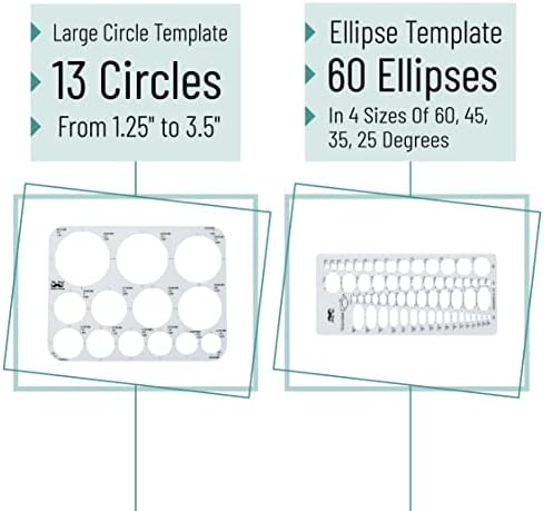 - Ellipse Template: Contains 60 Ellipses In 4 Sizes Of 60 – 45 – 35 – 25 Degrees, Size Ranges From 1/4” To 1 1/2", Accurate Center Lines Provided, Made From Durable And Flexible Clear Plastic For Drawing On Uneven Surfaces
