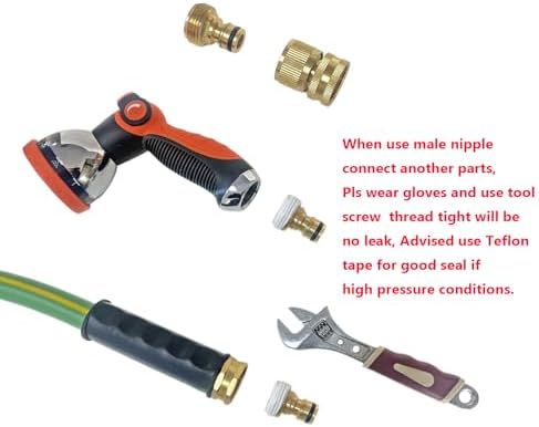 - Quick & Easy Connector- The hose quick connect 1-Handed Operation.Convenient to install with garden hose connector.Easy Off-And-On adapter provides a tight, perfectly with any standard Garden Hose Nozzle, garden hose,faucets,hose bibs and watering devices, if you use our male nipple to connect these parts, Advised use PTFE Raw Material Belt and tool to tigth in case of leak, the male thread is sharp pls wear gloves.