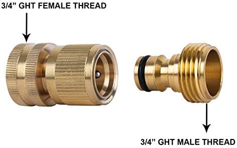 - ★【Durable And Solid Brass Construction Water Hoses Connector】-The water hose quick connect fittings most solid brass which means durability & leak-free. No cheap and flimsy aluminum or plastic material.Standard 3/4 inch GHT water hose quick connector fits all types of garden hoses. You can save much time using the quick connet sets install in spigot, hose end and nozzle.