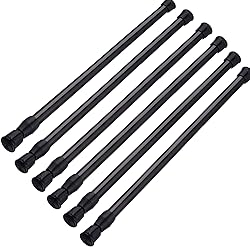 - SIQUK 6 Pack Tension Rods Cupboard Bars Specifications: Color: black Adjustable length: 15.7" to 28" Diameter: 0.5 inch Material: stainless steel and plastic Wide application - you can adjust rod length as curtain rod, closet rod, coat hanger and shoe rack, it also can be used in RV refrigerator and cupboard to keep objects in order. Easy installation - just pull and twist, extend the length to stuck between the boards, won't damage your walls, doors and windows. Warm tips The friction of the wall and the extension length of the rod will affect its working. Generally speaking, better frictional of the wall and shorter extension of the rod, it will work better. Package include 6 * Tension rods