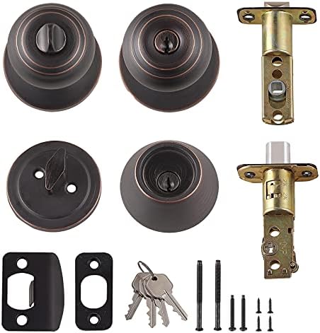 Amazon Basics Keyed Alike Exterior Knob with Key Lock and Deadbolt, Classic, Oil Rubbed Bronze, Set of 2