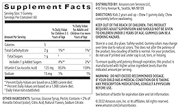 Puede apoyar el sistema inmunológico saludable*. Las gomitas masticables de Amazon Basics Kids' Vitamin C son de sabor naranja con otros sabores naturales y proporcionan 125 mg de vitamina C por porción. Son vegetarianas y sin gluten. Sugerencia de porción: Niños de 2 años en adelante mastican una gomita de vitamina diariamente. Mastique bien y bajo supervisión de un adulto.