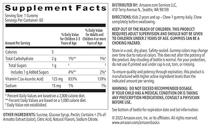 Amazon Basics Kids' Vitamin C 125mg Gummies, Orange, 60 Count, Immune Health, 2 Month Supply (Previously Solimo)