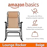 Amazon Basics Outdoor Portable Folding Rocking Chair with Headrest, Ergonomic Design, Weather-resistant Patio Reclining Lounge Chair for Porch, 33.6 x 37.4 x 26 inch, Beige
