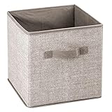 STORAGE MADE SIMPLE: These square bins are ideal for cube storage shelving units and fit nicely into each cubby; Use in storage units, or use these on any shelf or inside cabinets to create the storage solution that works best for you; Great for creating a clean, organized closet or bedroom - store hats, scarves, gloves, accessories, jeans, sweaters, workout clothing and gear, yoga pants, leggings, out-of-season clothing, and extra blankets or linens; Set of 8 INSTANT ORGANIZATION: These soft storage organizer boxes keep home clutter under control; Use together to create a large organizational set or separate the items for coordinated storage throughout the room; The universal cube format coordinates well with many furniture storage systems; An attached front pull handle makes moving on and off of shelves simple; Each cube has a matching reinforced insert that fits into the base of each cube before use for added support and stability FUNCTIONAL & VERSATILE: These versatile bins can be used throughout the home - use them in craft rooms, laundry/utility rooms, bathrooms, offices, garages, toy rooms, entryway or mudroom; Versatile, lightweight and easy to transport; Collapsible for compact storage; Great in apartments, condos, dorm rooms, RVs and campers; These generously sized bins are perfect for kids playrooms or bedrooms, there is plenty of space for games, blocks, dolls, puzzles, cars, and many other toys QUALITY CONSTRUCTION: Made from breathable non-woven synthetic fabric; Reinforced sides and bottom keep items secure and the bins keep their shape; EASY CARE: Clean with a damp cloth and allow to air dry THOUGHTFULLY SIZED: Each Measures 10.5" x 10.5" x 11" high