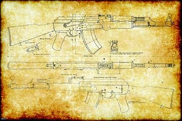 PosterMerchant AK47 Retro Vintage Machine Gun Weapon Engineering Technical Drawing Schematic Home Decor Print Poster 24x36