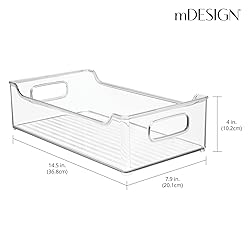 mDesign Wide Plastic Kitchen Storage Container Bins with Handles -Organization in Pantry, Cabinet, Refrigerator or Freezer Shelves - Food Organizer for Fruit, Yogurt, Squeeze Pouches - 2 Pack - Clear