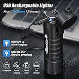 POWERFUL DESIGN CONCEPT:it is an excellent ensemble combining twin-arc lighter and glare flashlight, one end is designed as a lighter and the other end a flashlight and one 5-in-1 Magnesium Fire Starter With it, you don't need to buy a lighter and a flashlight separately, which is very suitable for home, camping, travel and hiking. It is also a perfect business gift and a best gift for friends and parents in Christmas. FUNCTION OF LIGHTER: the lighter can quickly ignite tobacco pipe, cigar, candlestick and accomplish all the work that needs to be done by a lighter. Can achieve fast charging in two hours, and be used for 150-300 times after a full charge. Can be cut off automatically after fully charged. No flames and windproof during the use. Pressing the switch for more than 7 seconds or so will activate the automatic protection mode which is being cut off automatically, making it safer for you to use. 5-IN-1 MAGNESIUM FIRE STARTER:Start fires in any weather conditions, over 16k strikes at 5,500°F with Magnesium Rod.150dB Whistle, Steel Scraper, 450LB 8core Paracord and Rod.More reliable than matches or lighter, weighs less than 2 ounces, 5" long.for Emergency Survival Kits, Camping, Hiking, All-Weather Magnesium Ferro Rod FUNCTION OF FLASHLIGHT:the flashlight is designed to be two modes as normal lighting mode and flash mode – to switch mode by pressing the switch. A full charge can achieve continuous illumination for about 3 to 5 hours. The operation is simple and convenient. AFTER-SAES SERVICE: there is any problem or dissatisfaction with the product quality. We support the refund return service