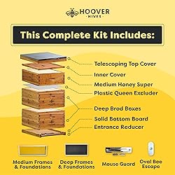 - The Hoover Hives Complete 10-Frame Beehive Kit is a premium, all-inclusive Langstroth hive system designed for both beginner and experienced beekeepers who demand long-term durability and low maintenance. Unlike competitors that use a single wax coating or paint, Hoover Hives are double wax dipped in 100% natural beeswax, allowing the wax to deeply penetrate the premium Fir wood for superior moisture resistance, weather protection, and extended service life—without ever needing paint. Fir wood’s tight grain resists warping, shrinking, and expansion far better than standard pine, ensuring consistent performance season after season. Precision dovetail joints provide exceptional structural strength, while the natural beeswax finish gives the hive a beautiful golden appearance that blends seamlessly into any apiary. Built to standard 10-frame Langstroth dimensions, this complete kit is fully compatible with other industry-standard hive components and includes all essential hive bodies, frames, foundations, covers, bottom board, and entrance reducer for a full working colony setup. Designed for long-term success, Hoover Hives deliver unmatched craftsmanship, natural protection, and exceptional value for building strong, healthy bee colonies. Assembly required.