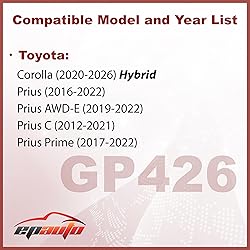 - EPAuto Engine Air Filter GP426Compatible Model and Year List:Replacement Made for Toyota: Corolla Hybrid LE (2020-2024)Prius (2016-2022)Prius AWD-E (2019-2022)Prius C (2012-2021)Prius Prime (2017-2022) Cross Reference:Replacement Made for Toyota: 17801-21060Compatible with FRAM: CA11426Compatible with ECOGARD: XA10014Compatible with Champ: AF5216Compatible with Duramax: DA5216Compatible with FVP: P1780121060, P178012106Compatible with IMC: 128 51 041Compatible with Mann-Filter: C17008Compatible with Mighty Distributing System: A90030Compatible with OEM: AF885Compatible with Parts Plus Oil by Ashland: AF9909Compatible with Premium Guard PureFlow: PA9909Compatible with Prime Guard: PAF10000Compatible with PUREPRO: A9058, A95216Compatible with Purolator: A19058Compatible with Service Champ: AF9058Compatible with Service Pro: MA10014Compatible with STP: SA11426Compatible with Transbec: XA10014Compatible with Warner: WAF5216Compatible with Wix: WA10000