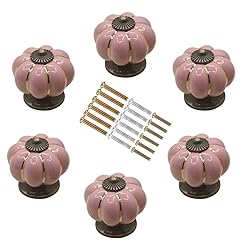 MARSTREE 6pcs Pumpkin Vintage Ceramic Door Knobs Round Shape Drawer Cupboard Locker Pulls Handles Wardrobe Drawer Cabinet Home Kitchen Hardware, Pack of 6 (Pink)