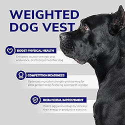 Heavy Duty Dog Training Vest - Crafted with heavy-duty ballistic material and double-stitched seams to withstand rigorous training and conditions, this muscle building training vest for dogs allows you to take the tactical approach for a durable and heavy duty workout. In short, it's build to last Maximum Comfort - Unlike other options, this comfortable dog training vest features sheepskin padded straps and linings. It's a dog fitness vest that caters for long training sessions, ensuring your dog remains at ease all the way through Adjustable Weight - Our adjustable dog training vest features weights that can be easily added or removed depending on your needs. The weight vest for small dogs is 34-38 inches in girth, comes with 10 x 1 LB pocket weights, and allows for customized intensity and dog strength training for all stages of development Weight Loss for Dogs - We consider our weight vest for dogs an essential piece of dog exercise gear, allowing you to easily promote healthier weight levels in your dog by doubling the intensity of daily walks, exercises or training regimes Made in the USA - Manufactured by a family-owned business committed to high-quality service dog equipment, dog exercise gear and dog training supplies. Like our entire range, our durable dog vest is built to last, we guarantee it