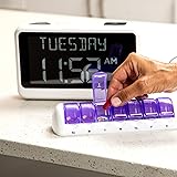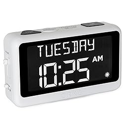LARGE DISPLAY PILL ALARM CLOCK-ORKA Talking Alarm Clock is a unique Medicine Reminder Day clock specifically designed for senior citizens to help eliminate anxiety about skipped medication. A large digital clock for seniors with a HD display 5.69”x 9.63”x 2.68” and Extra-Large Digits-1.93” high. Perfect TALKING CLOCK for BLIND, VISUALLY IMPAIRED, and elderly patients with dementia as it spells out the time and day of the week in full words with no confusing abbreviations or crowded displays. Buttons are big to assist the user. RECORD YOUR ALARM VOICE MESSAGES-This Day of the week clock by ORKA is the only one of its kind to allow you the option to record your own messages. With UP TO 8 ALARMS deliver timed reminders in your own voice. Leave a loving message, medication, or activity reminder. Another unique feature is our 30-minute loop system so no important reminders are missed. A digital desk clock which displays and announces in 6 LANGUAGES- English-USA, English-UK, Spanish, German, French, and Italian. Press button to hear the Day, Date and Time in your language any time you need. Press button to hear your weekly schedule. NOT BATTERY OPERATED WITH ADJUSTABLE VOLUME-This multiple-day white alarm clock is NOT BATTERY OPERATED. This clock is AC powered. It needs electricity to work. The battery is there in case of a power outage to retain settings. The max volume is LOUD at 90 decibels, ideal for those that are hard of hearing. Other features include a mute switch, flashing display during alarms, USB port, Sun or Moon icon to further assist users. The Talking Clock comes with our unique gentle tune not the usual jolting alarm noise of other clocks. IDEAL GIFT FOR PEOPLE WITH ALZHEIMERS & DEMENTIA-Dementia suffers will need assistance in setting up Talking Madi. Our customers have included people with dementia, Alzheimer’s, autism, mentally challenged, hearing impaired, sight impaired, teenagers, and seniors. We know what it feels like to worry that medication times are forgotten. Talking Madi ensures they will NEVER FORGET AGAIN. Sensitive words like dementia, Alzheimer's, and memory loss are intentionally excluded from the packaging, making this an ideal gift. OUR COMMITMENT TO YOU-ORKA proudly stands behind its products and offers a 100% purchase satisfaction. If not completely satisfied with our product, we sincerely urge you to take advantage of our “Pain-Free” Refund Policy. This is an AM PM or 24-hour Clock. Increase confidence & independence for your loved one when going about daily routines. Great for Seniors with memory loss, hearing impaired and sight impaired.