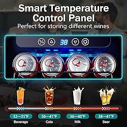 LARGE CAPACITY - Our beverage fridge holds up to 104 cans of your favorite drinks or wines. With 4 removable wire shelves, it holds different sizes of soda and beer cans vertically and horizontally. POWERFUL COOLING SYSTEM - This mini fridge chills drinks down to 32℉(Temperage range: 32-41℉).It allows you keep drinks at near-freezing and light-freezing point. Bringing you the coldest brew. SOLID STAINLESS STEEL DOOR - Insulate drink from external heat. Our cooler fridge's stainless steel door prevents cold air from escaping so the interior temperature can drop quickly and remain stable. SOLID STAINLESS STEEL DOOR - Insulate drink from external heat. Our cooler fridge's stainless steel door prevents cold air from escaping so the interior temperature can drop quickly and remain stable. BUILT IN OR FREESTANDING INSTALLATION: Our small wine refrigerator with 22.4" x 14.9" x 33.9" size adds class to your home or bar décor. It’s backed by a 1 year quality of complete satisfaction.
