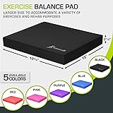 IMPROVE BALANCE & STRENGTH – Foam creates unstable surface for working on balance & core strength, which also strengthens feet/ankles for rehabilitation after injuries ALL FITNESS LEVELS – A challenge for athletes who want to improve functionality & power; a great tool for beginners & older adults to increase body awareness and enhance stability NON-TOXIC & NON-SLIP – Environmentally conscious TPE material is sweat-proof and slip-resistant, making it perfect for sweaty workouts and yoga and is easy to clean afterward MULTIPLE USES – Versatile pad can be used as a seat cushion, a knee pad for gardening, a foot pad for standing desks, as a meditation pillow, or for making yoga poses more challenging EXTRA LARGE SIZE – 18.75”L x 15”W x 2.25”H size is convenient for standing on and performing lunges, squats, planks, crunches etc.; lightweight 16 oz. is easy to carry