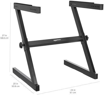 Amazon Basics Fixed Height Keyboard and Piano Stand, Z-Shape, Black, For Compact Space, Carpet Stability & More Legroom