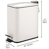 - For hygiene in the bathroom and kitchen – the rectangular pedal waste basket from mDesign! Whether for cosmetic products in the bathroom or for food waste in the kitchen, this compact bin from mDesign with a volume of 5 L always ensures order and hygiene. It is suitable for the main or guest bathroom as well as the kitchen, and can also be used in the office as a waste paper bin. The pedal bin can easily be opened by stepping on the pedal. Thanks to the lid, odours will not escape. The integrated plastic bucket can easily be taken out by its handle and can be cleaned by hand with a mild soap solution. The product details Compact pedal bin Bin for bathroom, kitchen and office 5 L volume Material: Metal and Plastic Colour: Beige Dimensions: 25.4 cm x 14 cm x 28.6 cm Model number: 06988MDBAEU