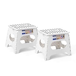 - Fold And Unfold It Using Only One Hand Single-handedly handle any situation where you need an extra 11 inches of reach. Even if your other hand is full, you can unfold the step stool so it is safe to stand on. The 9 x 11 platform is solid and stable when unfolded - use it with confidence. ☑ Folds Flats, Stores Anywhere When the step stool is folded flat, it is less than 2 inches wide. That means you can store it anywhere you might need use it without taking up a lot of space: the kitchen, the bathroom, the garage, the rooms, the RV, and the SUV. ☑ So Lightweight And Easy To Operate, Everyone Can Use It When you're short, everything seems out of reach. With the Epica Folding Step Stool, however, you will be able to fold, unfold, and carry the stool around to wherever they need it without any struggle or constantly asking for help. Great for developing their independence. The folding step stool is very simple to use, but if you are small and use it at first time, You can teach them to put their fingers in a good location to open it. To avoid they wrong operate and pinch their fingers. ☑ Help You Get The Things That In The Height You can use the Acko folding step stool to reach things on the top shelves of your cupboards, instead of to drag around your heavy wooden chair every time. It opens and closes very easily and feels very sturdy, and it's very lightweight so he can easily move it.