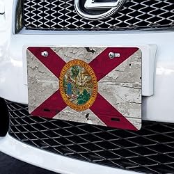 - About The Product: This awesome metal novelty license plate will add loads of character to your vehicle. Printed with special UV resistant inks, the design shown will last a long time without fading. The novelty license plate is made of solid aluminum for durability, and includes four mounting holes. The plate is a standard 6" (15.2cm) x 12" (30.5cm) size and will fit all North American license plate applications. About The Design: A rustic version of the Florida flag.